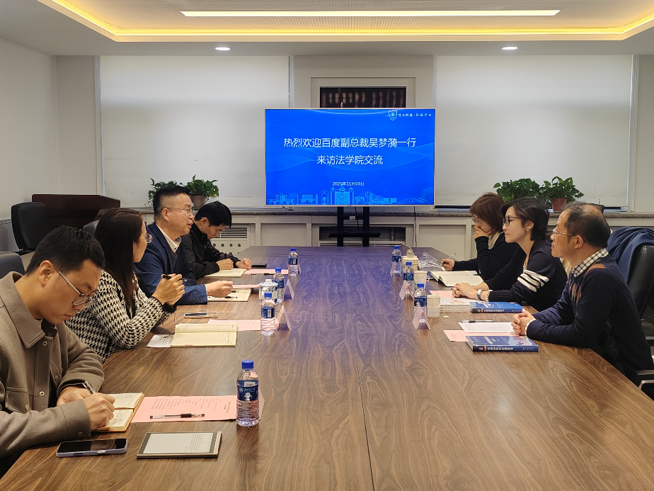 On the afternoon of November 3, Ms. Wu Mengyi, Vice President of Baidu, Inc., along with her delegation, visited the School of Law of Beijing Jiaotong University. The two parties held in-depth discussions on topics including legal research in the field of autonomous driving and the cultivation of legal talents for the transportation sector. The meeting was attended by Mr. Zhang Lixue, Party Secretary of the School of Law, Ms. Zhu Benxin, Deputy Dean, Mr. Li Xingyou, Secretary of the Youth League Committee, and Mr. Shi Chenyu, Academic Affairs Secretary, as well as Mr. Li Hong, Director of the Legal Department of Baidu, Inc., and Dr. Liu Wei, an expert in autonomous driving legislation. The symposium was presided over by Deputy Dean Zhu Benxin.