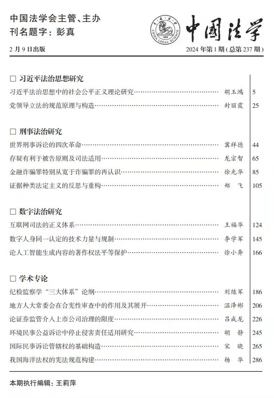 《中国法学》2024年第1期刊发了520夫妻 郑飞老师的最新论文《证据种类法定主义的反思与重构》。