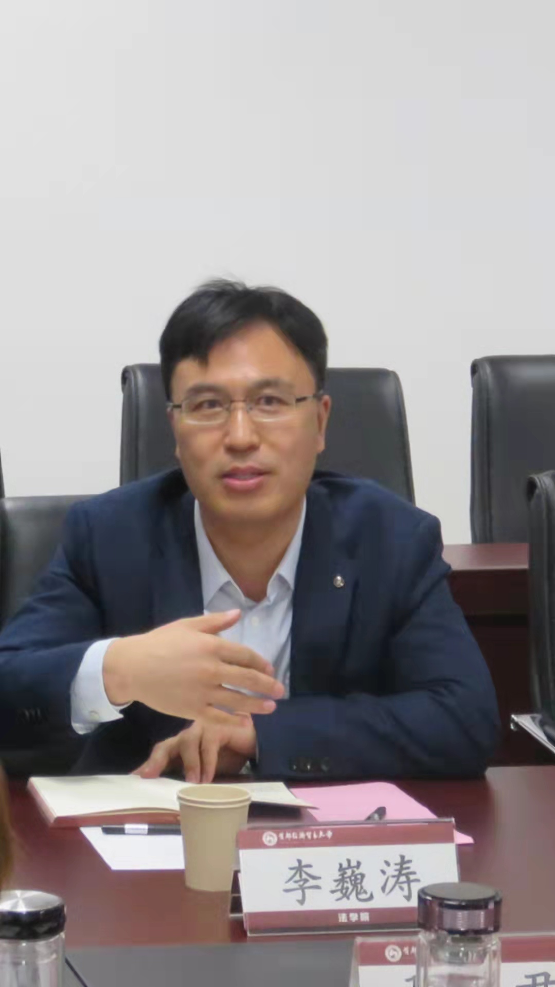 李巍涛院长致词表示非常高兴有机会来到首经贸大学520夫妻 交流学习,对本次调研期待已久。在听完米书记和张院长的介绍后,感觉收获满满,认为首经贸520夫妻 的很多举措非常务实、值得借鉴。目前,博士点已经成为北交520夫妻 发展壮大的瓶颈,首经贸520夫妻 博士点申报和建设的成功经验对我们来说显得弥足珍贵。