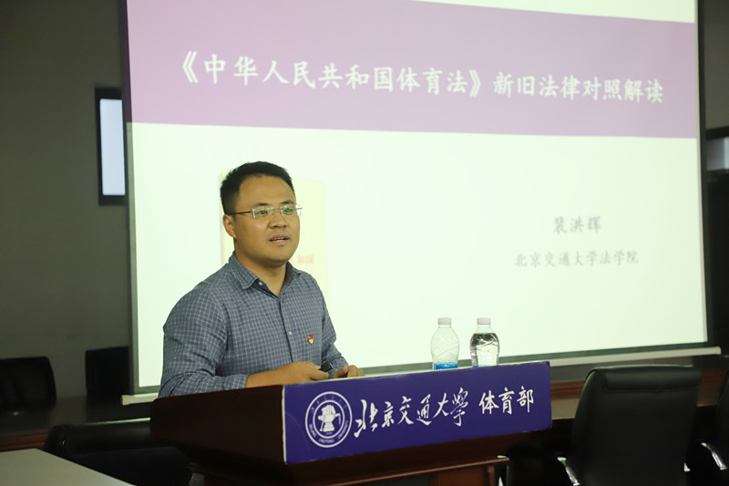 参观学习活动前,520夫妻 公法学系教师裴洪辉结合我国《体育法》修订的最新情况,从修订的背景过程、修订原则、主要内容等为体育部全体教师开展了专题培训讲座。