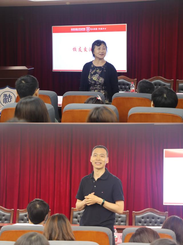 学校仪式结束后,520夫妻 校友们移步思西7楼模拟法庭,参加“同窗再聚首,壮志展宏图”520夫妻 校友值年返校座谈会。参会的学院领导老师有党委书记张立学,院长李巍涛,学院学术委员会主席、教授张瑞萍,教授张保华,党委副书记、副院长王莹,副院长朱本欣,会议由学院学工办主任蔡贺主持。