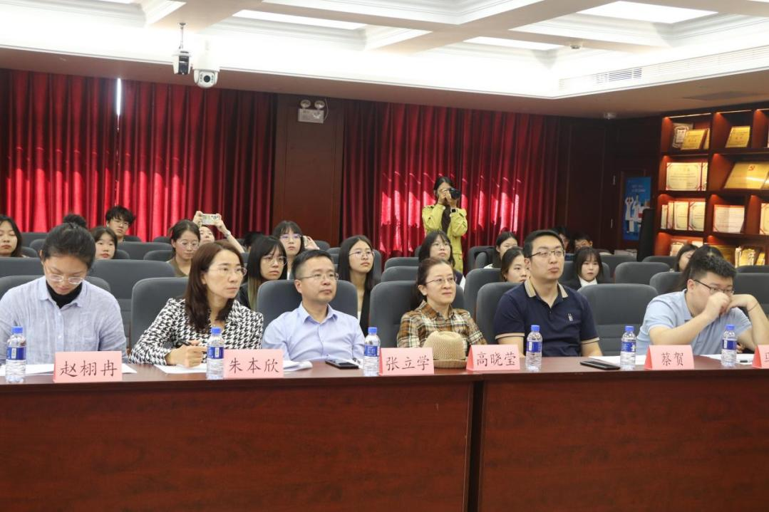 学院党委书记张立学,学位委员会主席高晓莹,副院长朱本欣,学工办主任蔡贺,教学科科长赵栩冉,班主任、任课教师代表马国洋,本科生辅导员黄诗鳗,以及2023级学生骨干中选出的三名学生代表张粲,陈子航,林湘蓉共同担任评委。本次共有31名同学参与答辩,答辩顺序由答辩同学随机抽签决定。答辩过程中,同学们从思想政治、学习成绩、科学研究、综合素质等多个方面进行展示,他们或慷慨激昂,或娓娓道来,博得阵阵掌声。