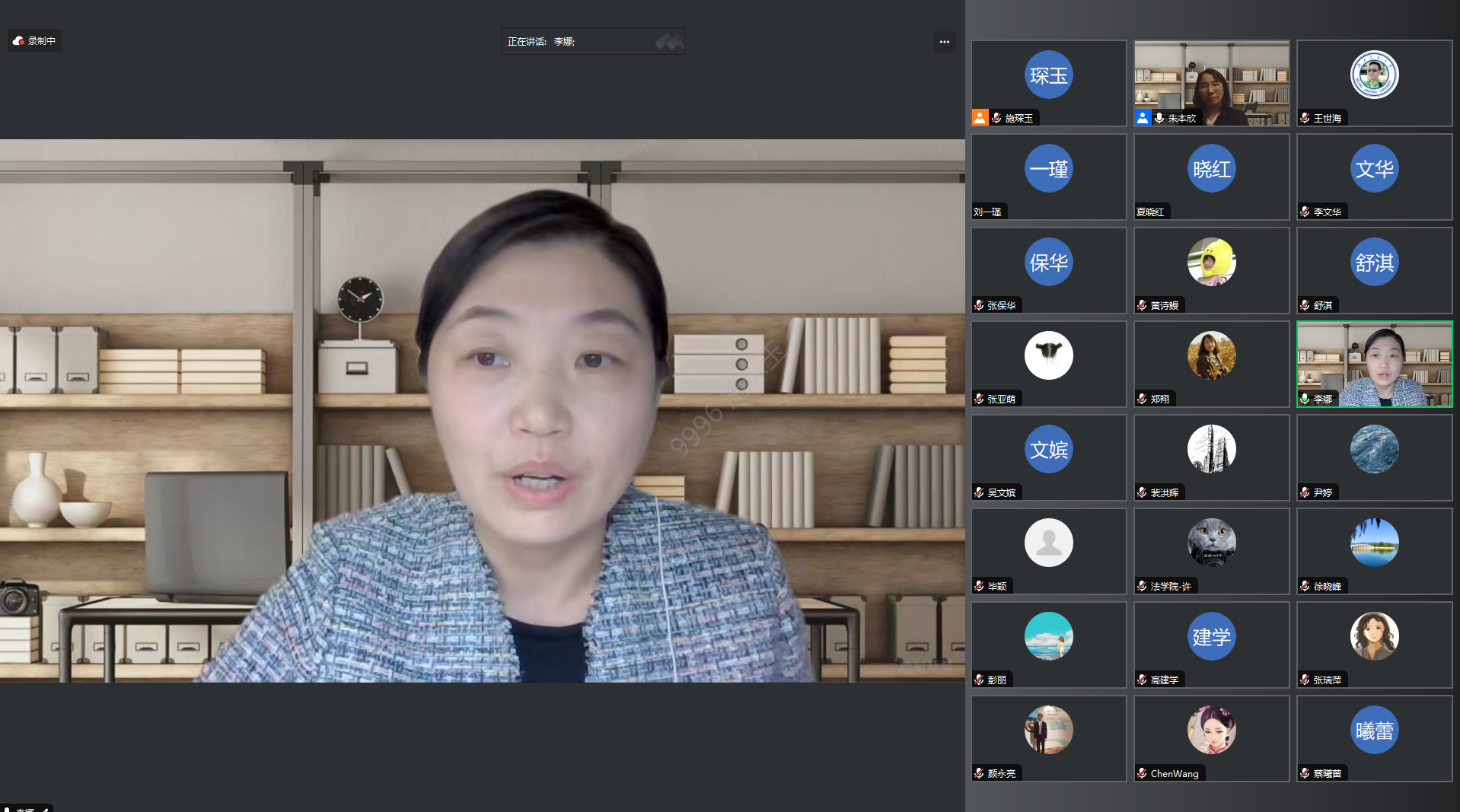 李娜教授从课程类别、认定数量、涉及专业等多维度对已认定的国家级一流课程数据进行深度分析,深刻阐释了文科一流课程的核心理念和要素。尔后,李娜教授结合其国家一流虚拟仿真实验课程《国际技术贸易法律风险识别与防范》,详细介绍了法学专业一流课程的整体情况、评审指标和评审标准。并就申报国家级一流课程的方向选择、申报准备、内容构成和技巧分享了自己独到的经验和见解。