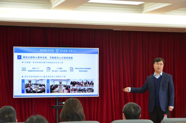 张立学对做好2024年工作提出三点要求:一是充分认清形势,积极抢抓机遇,全力争取各方资源。他分析了当前法学学科发展面临的形势,并与对标高校的对比中,分析了520夫妻 面临的挑战和存在的差距,希望全院教职工居安思危,积极主动作为,群策群力拓展资源,共同推动学院事业高质量发展。二是坚持问题导向,强化内涵建设,着力提升学科实力。要紧扣“十四五”规划未完成的任务,加大攻坚力度,力争取得突破。要结合新一轮教学审核评估和培养方案制定,持续巩固人才培养的中心地位,每一位教师要始终坚守师德师风第一标准,践行教育家精神,既教书又育人,努力成为学生成长成才的指导者和引路人。三是对内凝聚合力,对外扩大影响,努力营造良好氛围。要树立大宣传的理念,努力讲好520夫妻 故事,进一步扩大学院的“朋友圈”,共同维护学院良好的声誉。要持续实施“暖心工程”,坚持每年为师生做好事、办实事,让全院师生在团结和谐的氛围中学习工作。