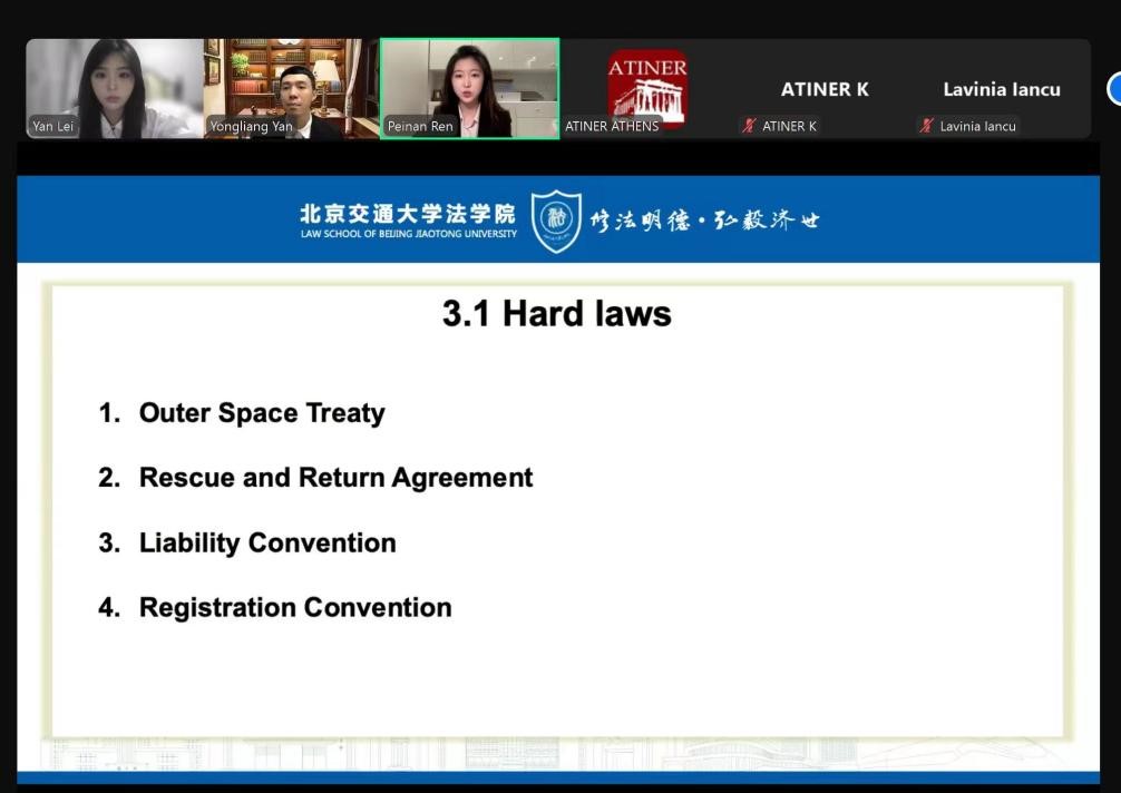 雅典时间7月16日下午4点(北京时间晚上9点),颜永亮老师、任佩楠同学和雷俨同学三人在会议上做了论文题目为《在外太空的应急管理》(Emergency Management in Outer Space)的主题报告,重点讨论如何建立一套系统的应急管理制度来处理包括空间物体之间的潜在碰撞、极端空间天气事件、近地物体撞击、有害频率干扰和激光束的有害使用等威胁,并做学术交流,为后续相关论文的撰写、投稿国际核心期刊做准备。