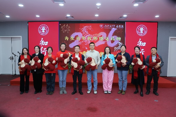 全体院领导演唱《朋友》,以歌声凝聚共识、传递温情,同时为生肖年教师赠送礼物,表达亲切关怀。