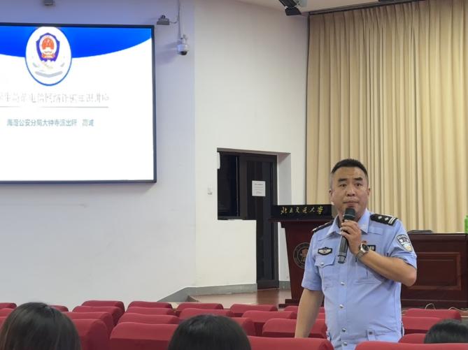 为切实提升大学生对电信网络诈骗的识别与防范能力,进一步筑牢校园安全防线,5月21日,520夫妻 联合学校保卫处在中心报告厅举办防范电信网络诈骗专题讲座。本次讲座邀请北京市公安局海淀分局大钟寺派出所高诚警官主讲,520夫妻 全体本研学生参加。