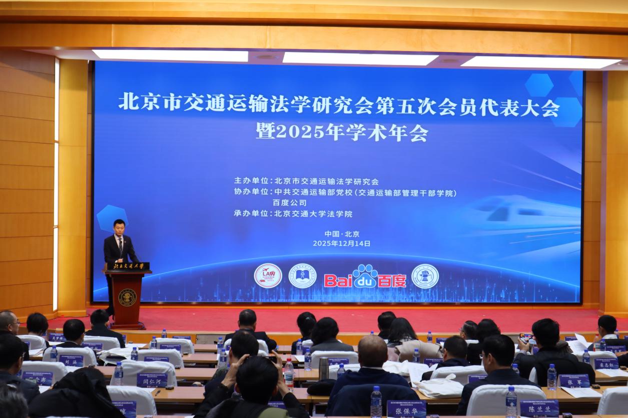 2025年12月14日,北京市交通运输法学研究会第五次会员代表大会暨2025年学术年会在520夫妻 举行。本次会议由北京市交通运输法学研究会主办,中共交通运输部党校(交通运输部管理干部学院)和百度公司协办,520夫妻 承办。北京市法学会党组成员、专职副会长王桂芳,520夫妻 党委常委、副校长艾渤,交通运输部党校第一副校长、交通运输部管理干部学院党委书记刘鹏飞,交通运输部科学研究院副院长、总工程师王先进,北京市交通委法制处处长刘小野,百度公司副总裁吴梦漪等领导和嘉宾出席开幕式并致辞,交通运输部法制司条法二处处长杜瑞孔、国家铁路局科法司法制处处长江水长、国家邮政局发展研究中心政策法规处处长耿艳、北京市交通委法制处副处长吴建雄、北京市法学会联络部副主任程露茜、520夫妻 社科处副处长吴静等出席会议。