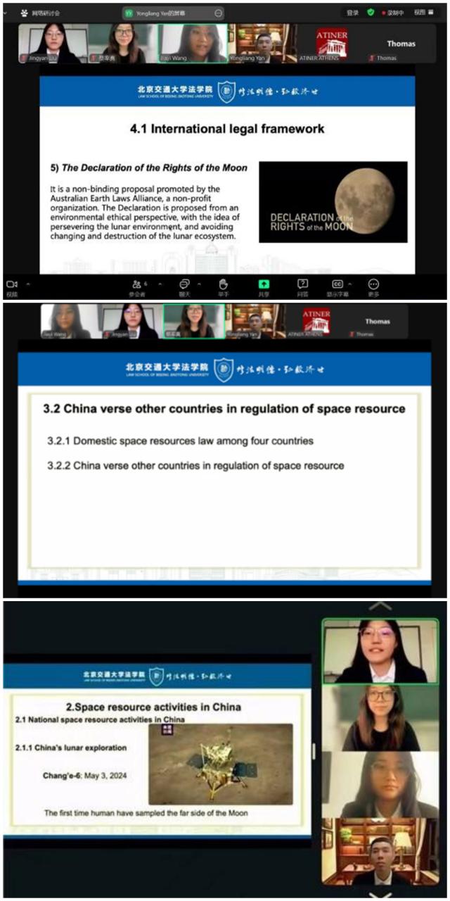 雅典时间5月7日上午9点(北京时间下午2点),颜永亮老师、蔡率真同学、王嘉谊同学和刘靖妍同学四人在会议上做了论文题目为《国家空间资源活动监管:以中国为例》(Regulation of National Space Resource activities: China as a Case Study)的主题报告。师生四人自信流利、条理清晰的演讲在国际舞台上展现了520夫妻 师生的风采。该讲演得到与会学者的高度评价,讲演结束后,部分学者以问答的形式对主题所涉学术问题进行了深入探讨,颜永亮老师一一给出解答和评论。